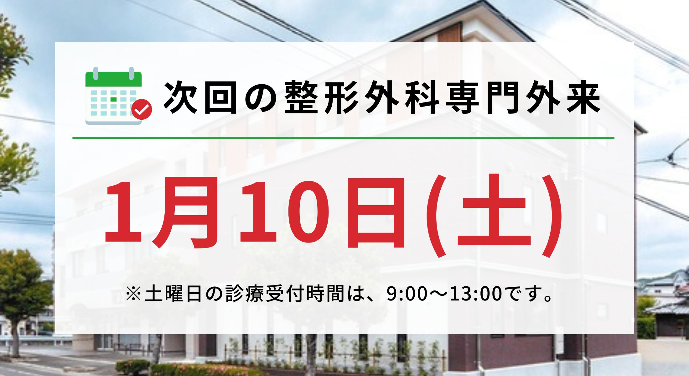 新着記事 年末年始のご案内2025年12月17日 1月の整形外科専門外来の日2025年9月30日 【大切なお知らせ】水曜午後の診療について2025年9月5日 Twitter Share Pocket Hatena LINE コピーする