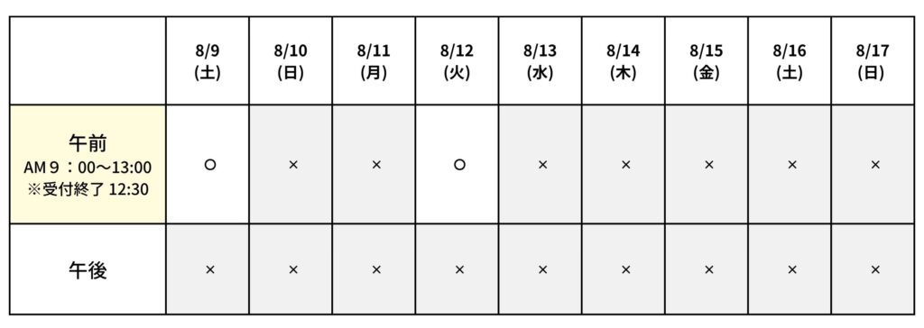 HOME > お知らせ > お知らせ お盆休みについて 2025年8月4日 ※8/18〜通常診療 <注意点> お盆休みは院長不在のため時間外の診療ができません。 発熱や風邪症状等で受診希望の方は下記へ相談してください。 佐世保市立急病診療所:0956-25-3352長崎県救急医療電話相談:#7119 もしくは 095-801-1217 ご迷惑をおかけいたしますがよろしくお願いいたします。 村上医院 院長 村上豪志 Twitter Share Pocket Hatena LINE コピーする -お知らせ